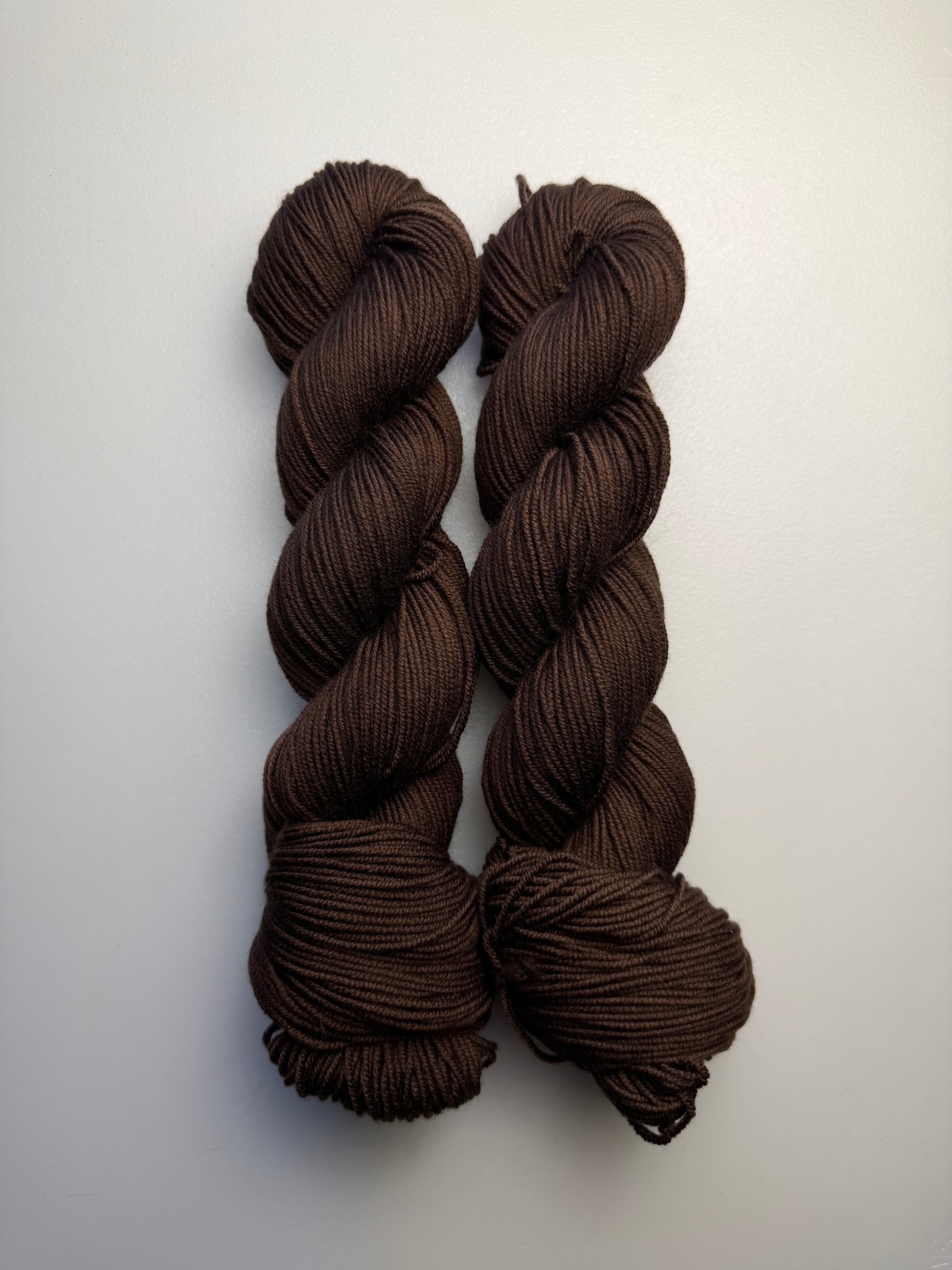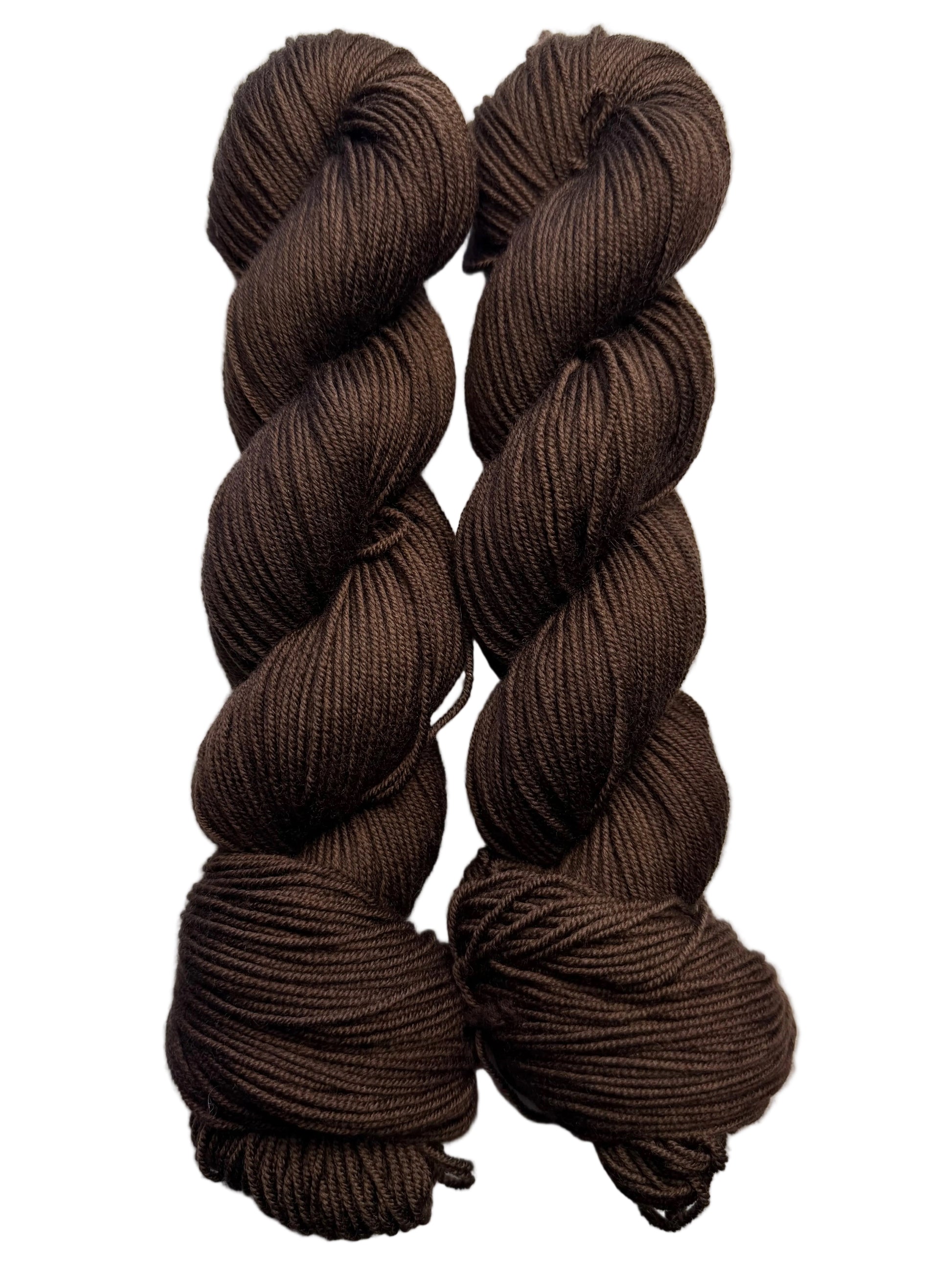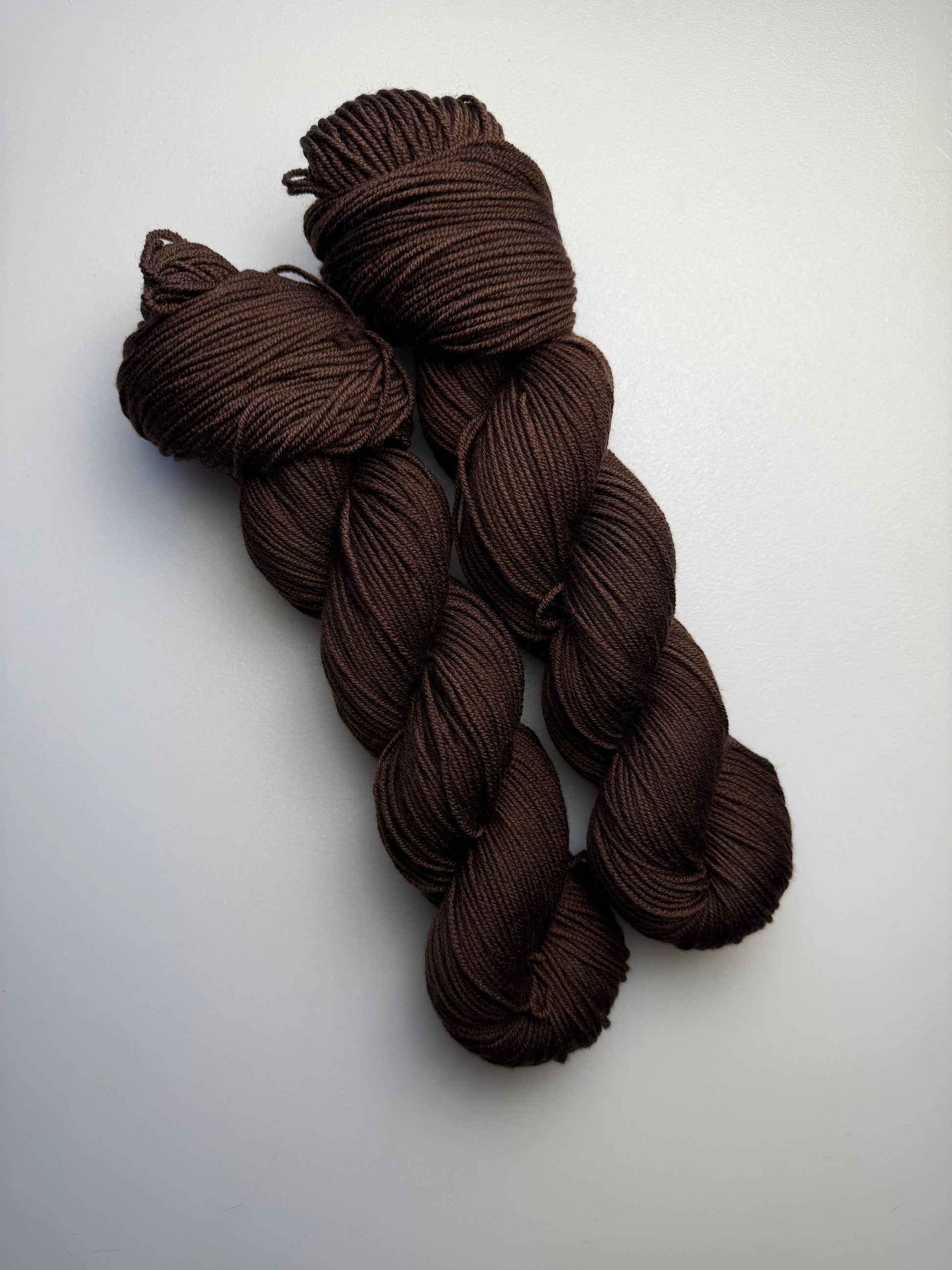 Cocoa is a milky warm brown hand-dyed yarn with soft tonal depth that enhances stitch definition and texture. This cozy neutral brown shade is versatile and timeless, perfect for sweaters, scarves, socks, shawls, and everyday knitting and crochet projects. Its warm undertones pair beautifully with creams, earthy tones, pastels, and bold accent colors.